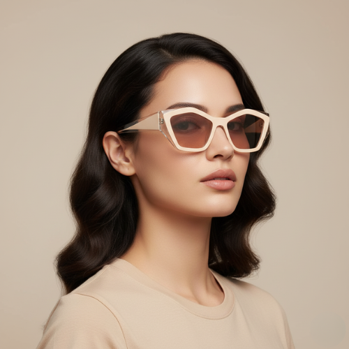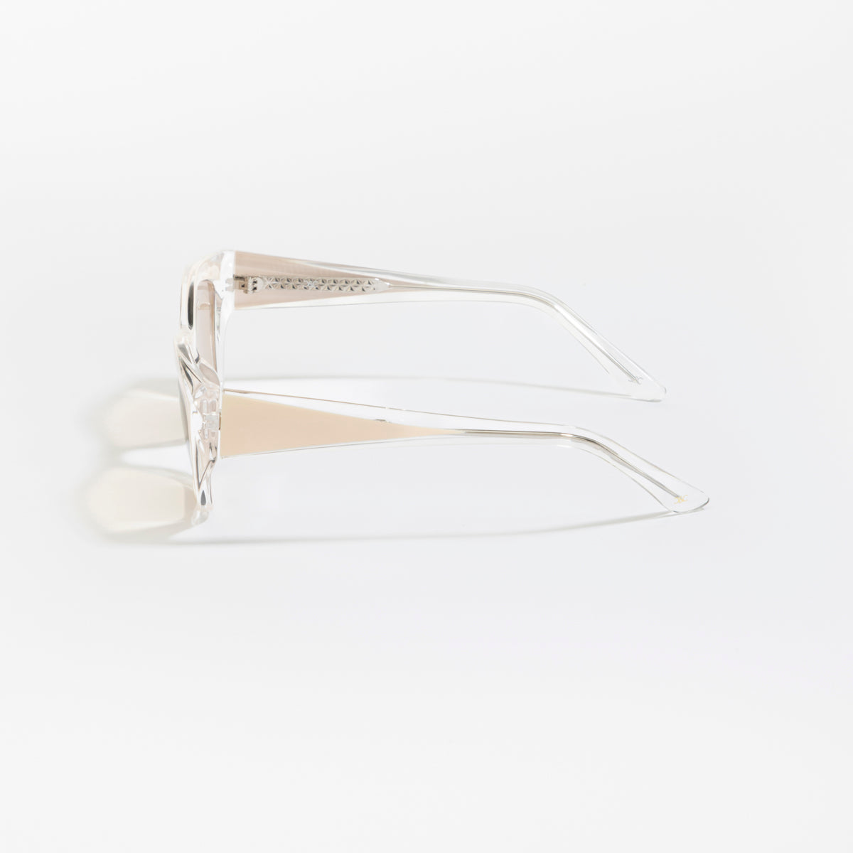 The Cain & Co Malvern sunglasses blend soft tones with sharp design. Featuring a geometric cat-eye frame in translucent nude-beige with clear accents and warm nude lenses, Malvern is subtle yet striking. Perfect for pairing with chic casual fits, street style, or elevated summer looks.