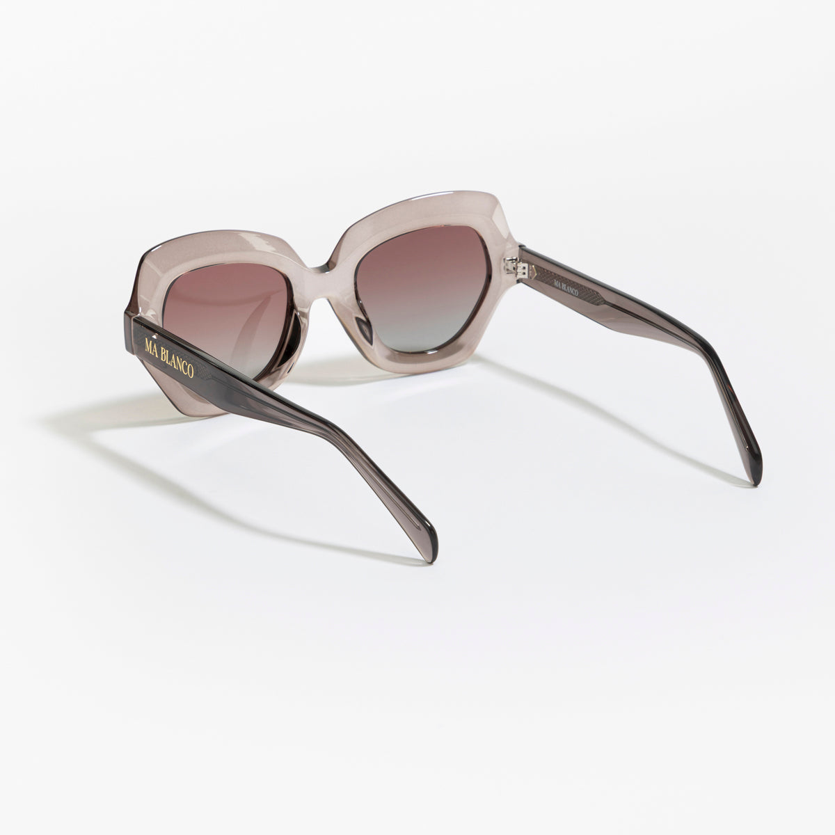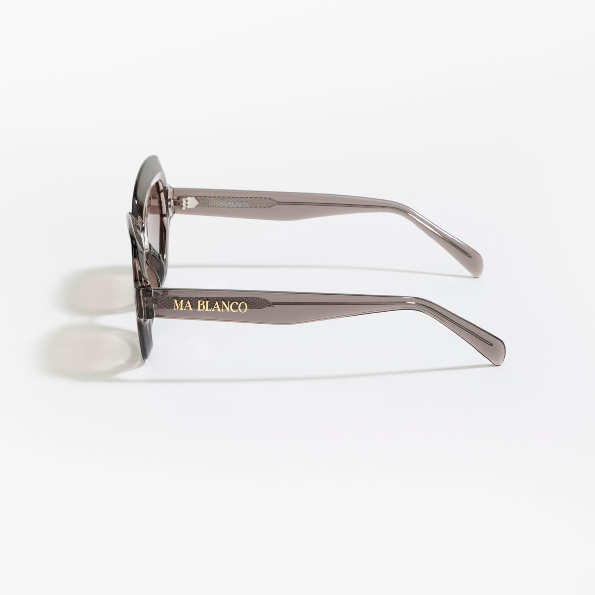 The MA BLANCO BELLA VENDETTA sunglasses channel fierce femininity with their sculpted geometric frame and smoky grey hue. The soft gradient lenses offer a touch of mystery, while the gold MA BLANCO logo adds a hint of luxe sophistication. Designed for women who own their narrative with unapologetic power.