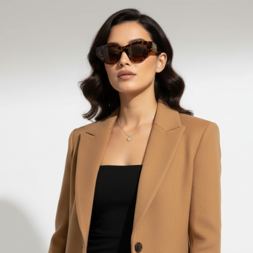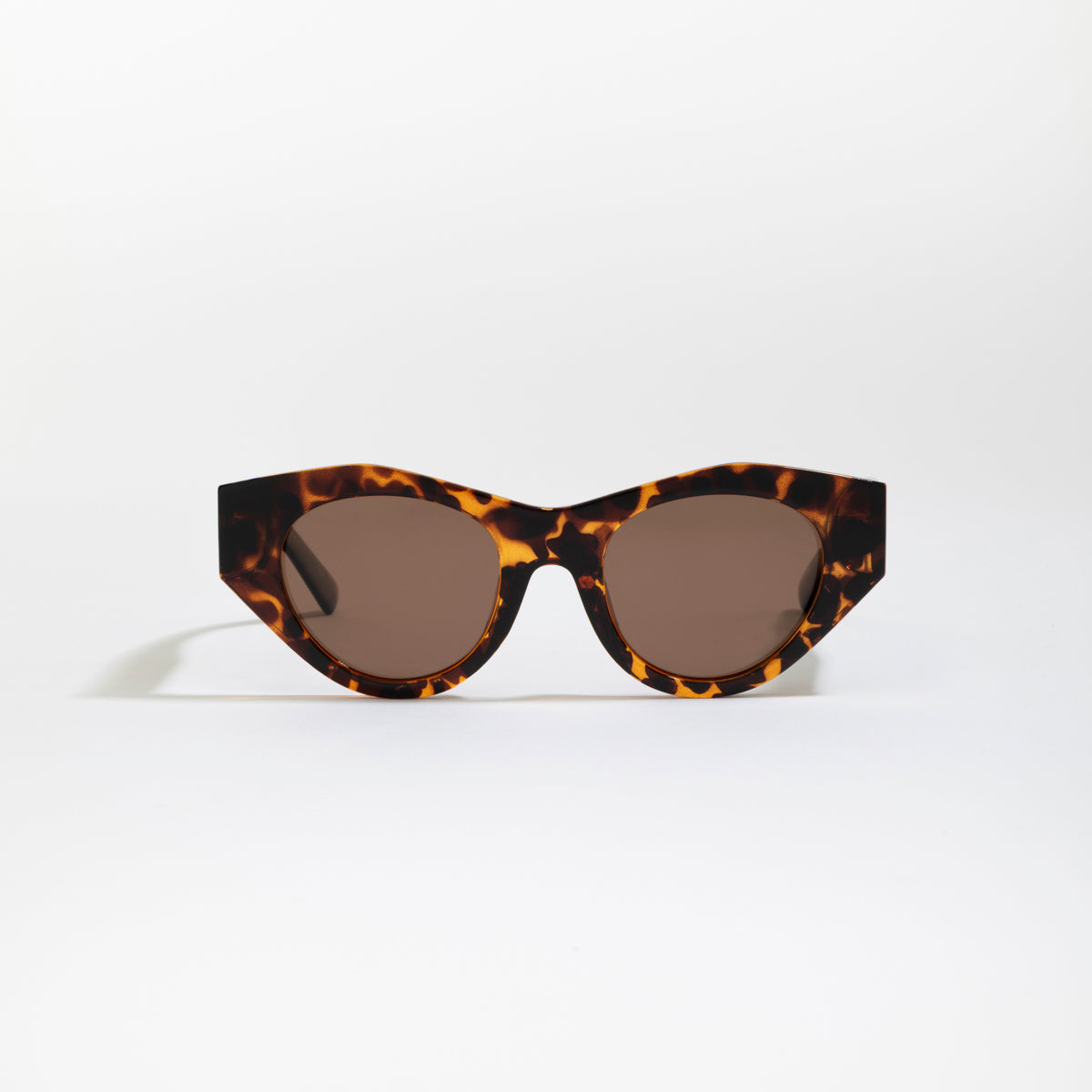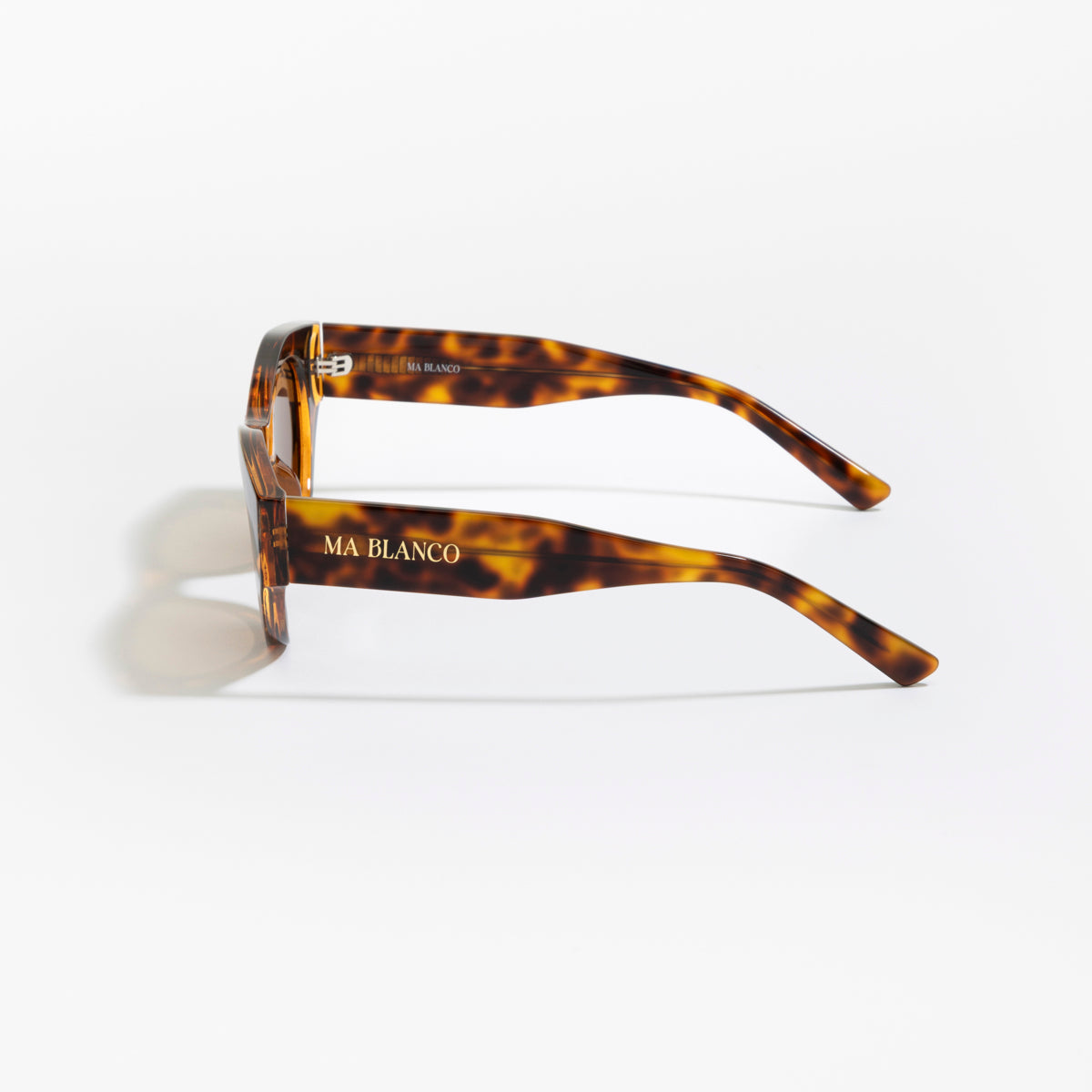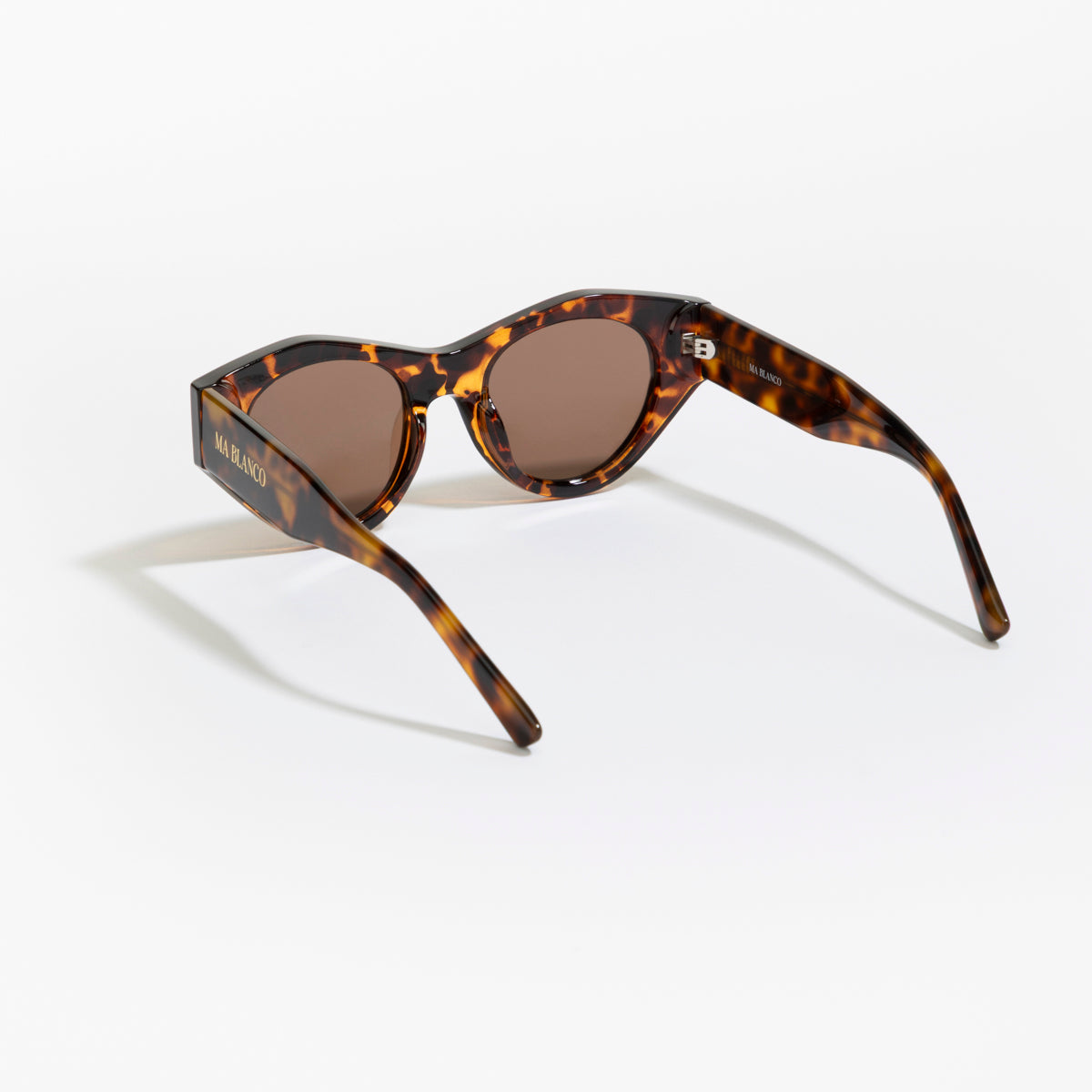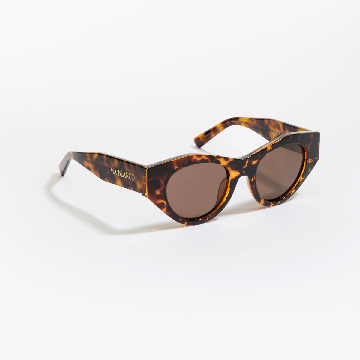 The MA BLANCO FIERA sunglasses exude bold elegance with their fierce cat-eye silhouette and classic tortoiseshell pattern. The rich brown lenses pair perfectly with the striking frame, offering both style and sun protection. Finished with the MA BLANCO logo in gold on the temple, these shades are designed for women who own their presence with confidence.
