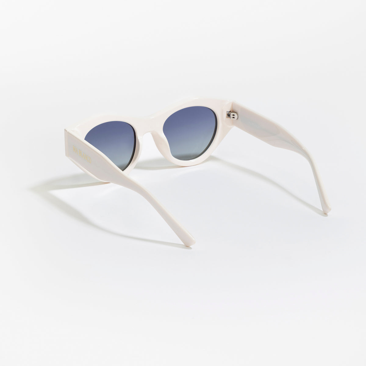 The MA BLANCO GRAZIELLA sunglasses offer soft sophistication with a white frame and cool blue gradient lenses. These shades bring a fresh and airy touch to any outfit, completed with the gold MA BLANCO signature on the temple.
