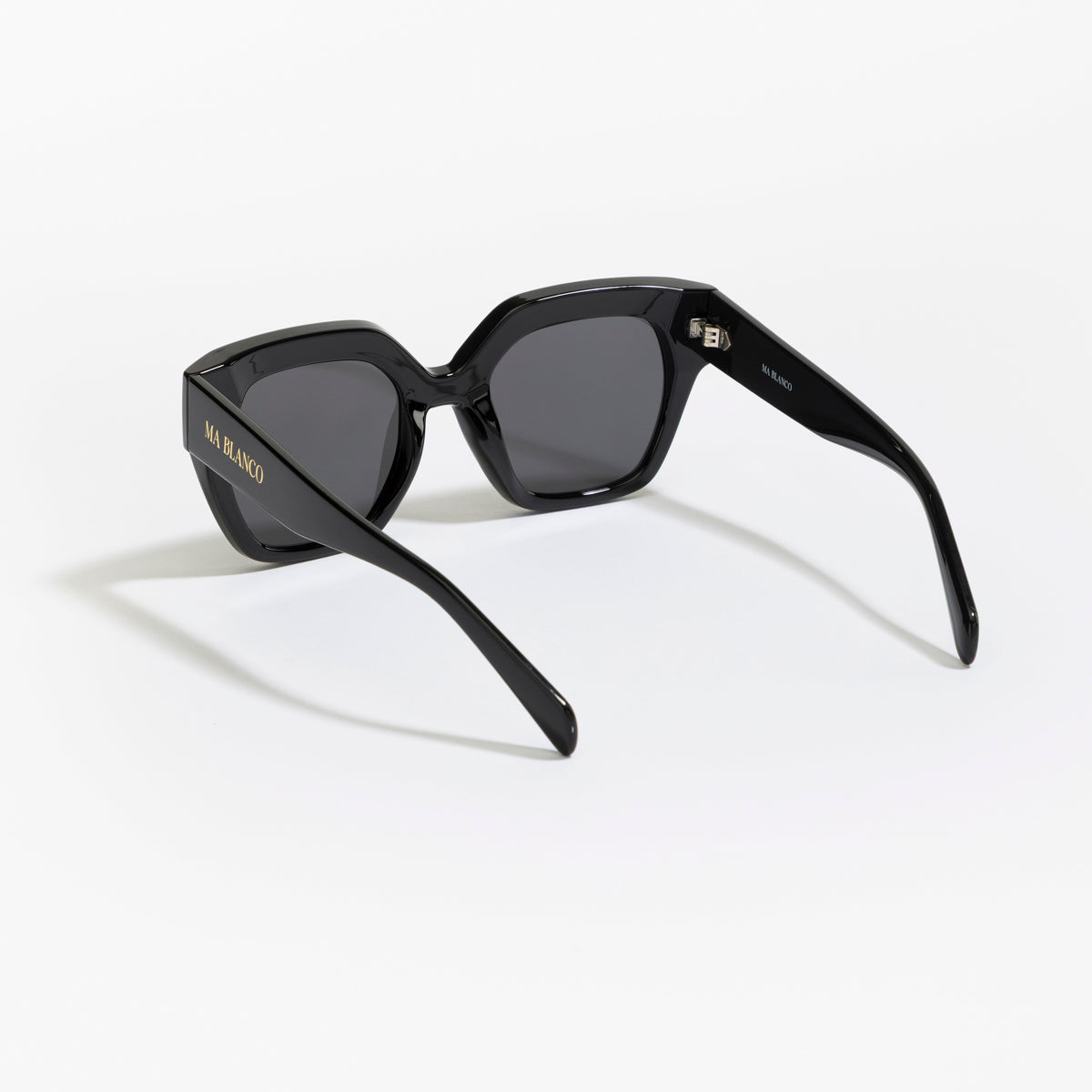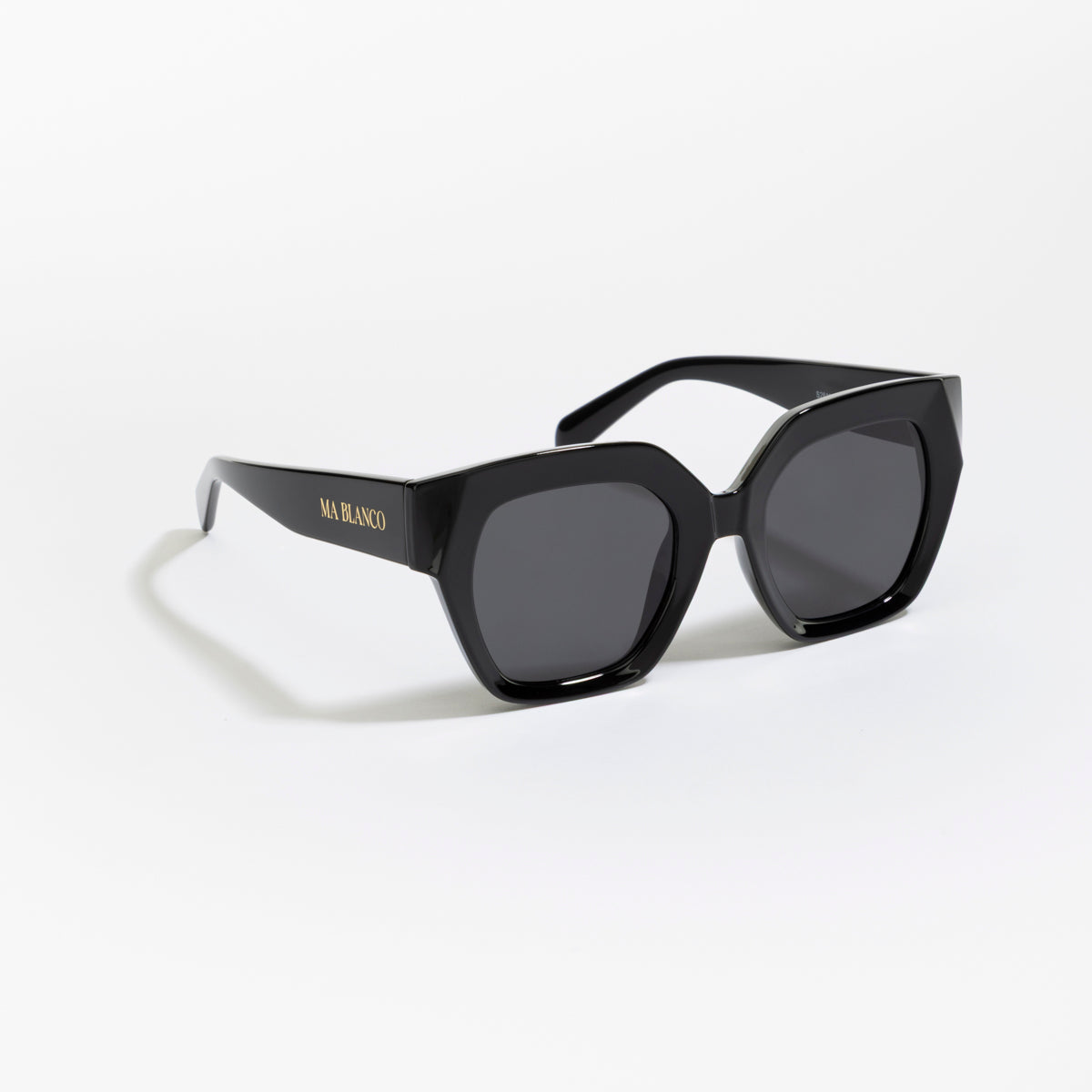The MA BLANCO DONATELLA sunglasses channel contemporary edge with their strong square black frame and deep-tinted lenses. The understated gold logo at the temple complements the bold yet refined design, made for commanding attention.